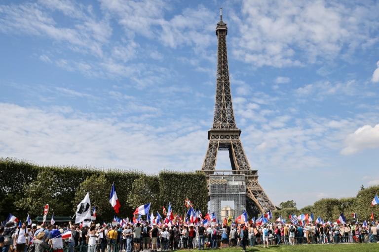 A Paris, où cinq rassemblements sont programmés les manifestants ont commencé à défiler depuis le pied de la tour Eiffel jusqu'aux Invalides, à l'appel du mouvement des Patriotes de Florian Philippot. "Macron; ton pass on n'en veut pas", "liberté, Liberté", reprennent les manifestants.