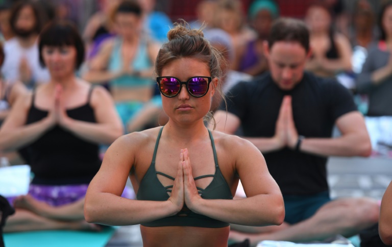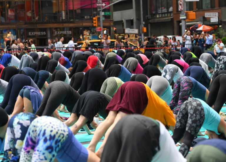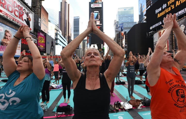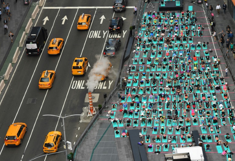 Des milliers de yogis ont célébré mercredi le solstice d'été au milieu des klaxons et des néons de la célèbre place de Times Square à New York, témoin de la popularité du yoga dans la première métropole américaine.