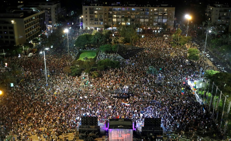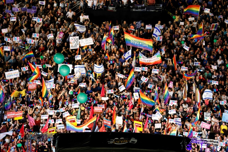 Des milliers d'Israéliens ont manifesté dimanche, notamment à Tel-Aviv, contre une loi excluant les couples de même sexe du droit de recourir à la gestation pour autrui (GPA). La police n'a pas donné de chiffres sur le nombre de manifestants mais le quotidien Haaretz a évoqué la présence de quelque 60.000 personnes sur la place Yitzhak Rabin à Tel-Aviv.