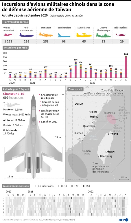 Il survient moins de deux semaines après la visite de la présidente de la Chambre américaine des représentants Nancy Pelosi, sur cette île revendiquée par les autorités chinoises.