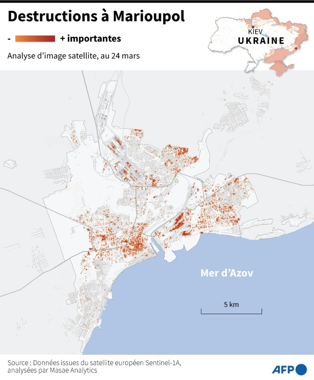 "Toutes les entrées et sorties de la ville sont bloquées (...), il est impossible de faire entrer à Marioupol des vivres et des médicaments", a affirmé le président ukrainien, accusant les forces russes de bombarder les convois d'aide humanitaire.