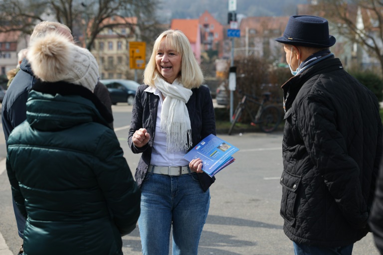 Dans le land du Bade-Wurtemberg, bastion allemand de la contestation des mesures sanitaires, Christina Baum tracte sous un beau soleil. A quelques jours d'élections, cette porte-parole régionale sur les sujets de santé du parti AfD, aborde la question du Covid avec ses sympathisants sans masque ni tabou. L'un d'eux, Hellmuth Mendel peste contre cette "fable de la mafia financière internationale criminelle".