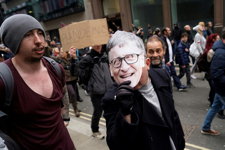 Le pays a été secoué quelques semaines plus tôt par plusieurs nuits d'émeutes inhabituelles lorsqu'un couvre-feu a été imposé. Dans la manifestation, on retrouve bras dessus bras dessous militants populistes, dénonciateurs d'un gouvernement mondial, défenseurs des médecines naturelles... Un dénominateur commun les réunit: le scepticisme face au discours officiel sur la pandémie de Covid-19. Qui l'a créée ? Chacun offre une réponse différente, mais deux avatars du capitalisme mondialisé reviennent régulièrement: l'organisateur du Forum économique mondial Klaus Schwab et Bill Gates.