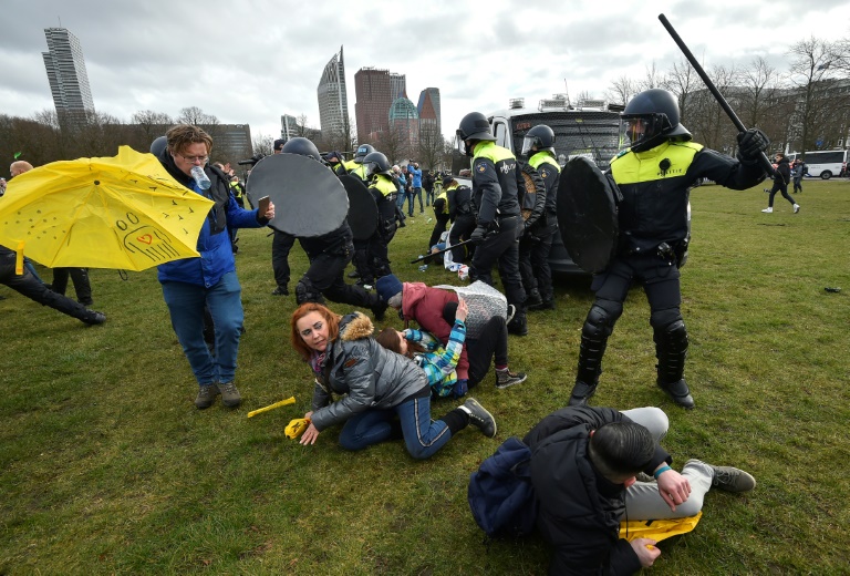Ce même dimanche aux Pays-Bas, veille des élections législatives, 3.000 personnes sont réunies sur le Champ de Mars de La Haye contre les restrictions anti-Covid. Un joyeux carnaval strictement encadré par la police montée.