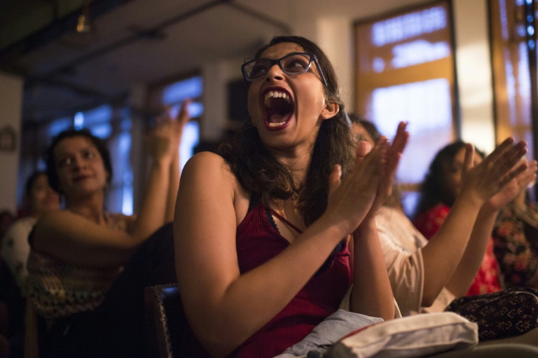 Pas un homme dans ces représentations réservées aux femmes: ni dans le public, ni sur scène, ni même parmi les préposées aux tickets, lors d'une récente édition du spectacle Femapalooza dans un studio de la capitale indienne New Delhi. "L'énergie dans la pièce est différente", raconte à l'AFP Priya Elias, ancienne avocate et humoriste en herbe. "On dit toujours aux femmes qu'elles ne sont pas drôles et ce n'est pas vrai du tout."