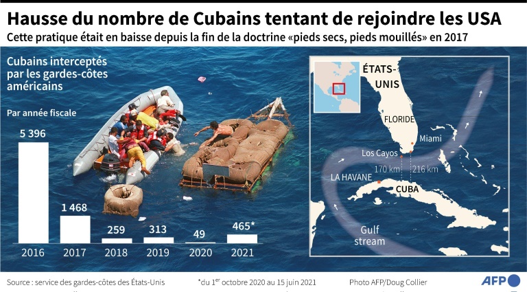Quatre jours plus tard, les garde-côtes américains ont annoncé le renvoi vers l'île de 59 autres Cubains. Leur décompte, depuis le début de l'année fiscale (octobre), est de 465 migrants reconduits. Ces dernières années pourtant, les chiffres étaient en baisse. Sur l'année fiscale 2016, 5.396 migrants avaient été rapatriés, puis 1.468 en 2017, un recul qui s'est accéléré pour arriver à seulement 49 en 2020.