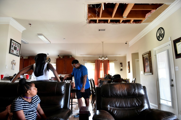 Plafond effondré, porte de garage défoncée, panier de basket renversé: Lxchelle Arceneaux observe lundi avec désespoir les ravages que l'ouragan Ida a infligés dans la nuit à sa maison dans la ville de LaPlace, à l'ouest de la Nouvelle-Orléans. "Mes enfants étaient terrifiés", raconte à l'AFP la femme de 46 ans, vêtue tout de bleu sur le seuil de sa demeure. "Je n'avais jamais entendu des rafales de vent comme ça."