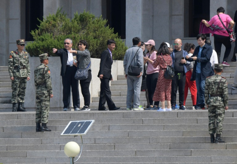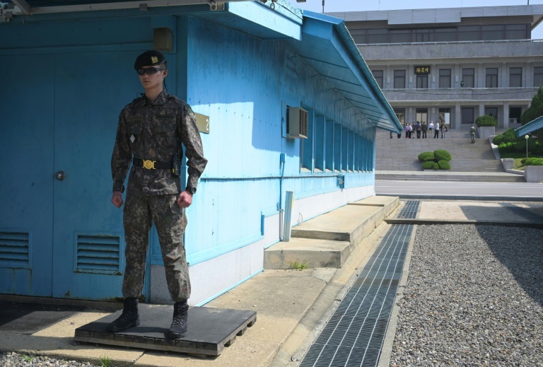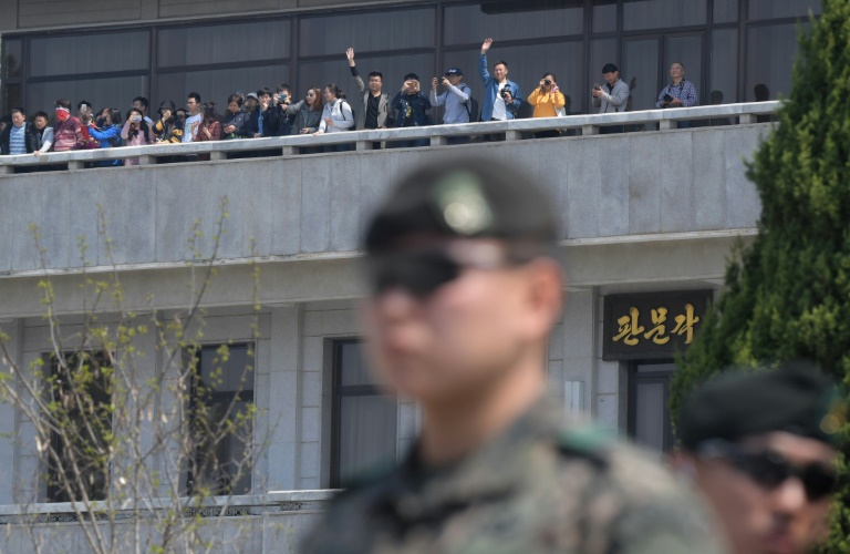 Les soldats sud-coréens avaient leur air impassible habituel mais pas leurs armes mercredi à la reprise des visites du public du côté sud du village de Panmunjom, seul endroit de la frontière intercoréenne où les soldats des deux camps se font face.