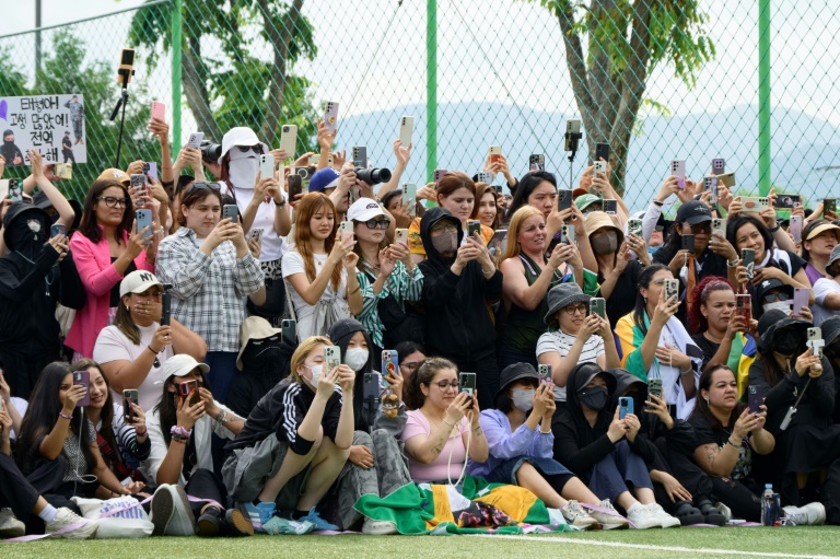 Mercredi, des milliers de personnes se trouvaient aux abords du siège de HYBE dans le centre-ville de Séoul. Les fans entonnaient des chansons de BTS et criaient "Jimin, Jungkook", sous les caméras des médias locaux, qui voient un "renouveau de l'industrie de la K-pop" dans le retour du septuor à la vie civile.
