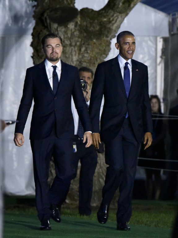 A l'approche de l'entrée en vigueur de l'accord de Paris sur le climat, Leonardo DiCaprio et Barack Obama ont appelé lundi soir, depuis les jardins de la Maison Blanche, à une mobilisation forte et rapide pour enrayer la hausse du thermomètre mondial.