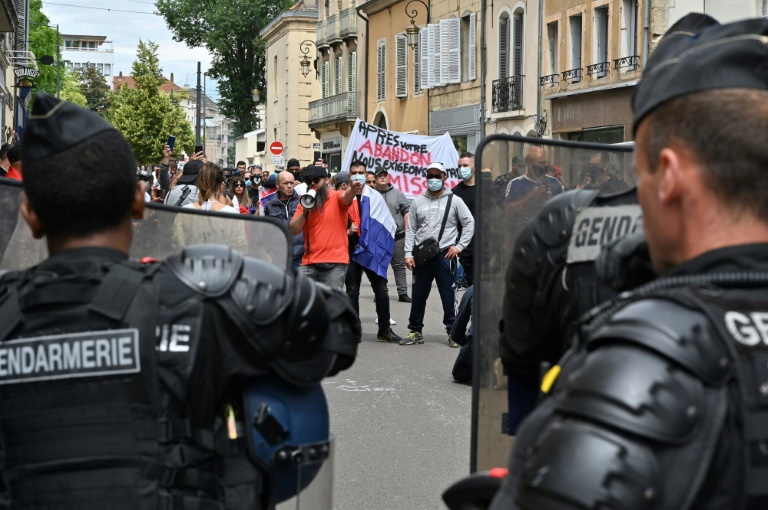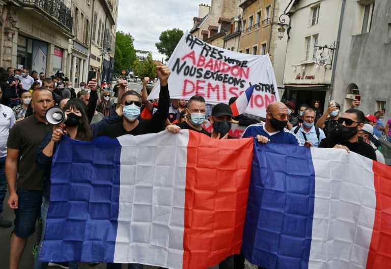 "Après votre abandon, nous réclamons votre démission!", pouvait-on notamment lire sur une banderole des manifestants rassemblés dans le calme dans le centre-ville de la capitale bourguignonne, sous la surveillance des forces de l'ordre.