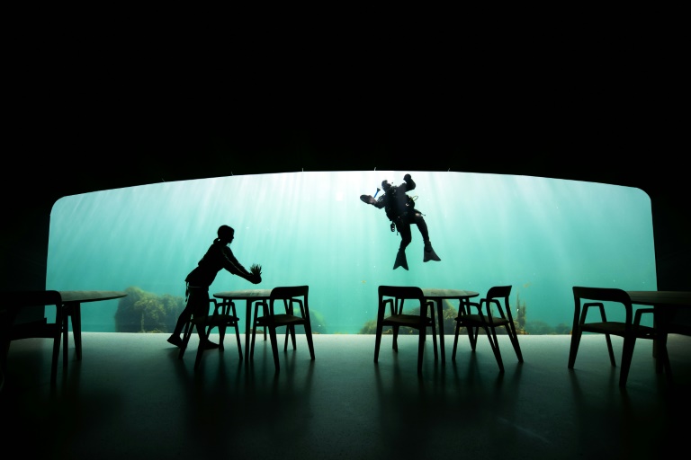 Derrière cet écran géant de plus de 36 m2 "semblable à un périscope immergé", selon l'expression de ses concepteurs, le spectacle sans cesse renouvelé de la vie aquatique. "Under en norvégien, ça veut dire +sous+ dans le sens submergé et sous-marin et ça signifie aussi quelque chose comme +merveille+", explique Stig Ubostad, copropriétaire avec son frère du restaurant sous-marin. "C'est sans l'ombre d'un doute le plus grand au monde et le seul en Europe", souligne-t-il.