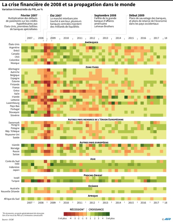 Avec la certitude qu'il y aura une autre crise - il y en a toujours une -, Ian Bremmer, expert en risque politique à l'Eurasia Group, craint qu'il ne soit impossible dans le climat de division actuel, généré en partie par le président américain, d'organiser une réponse coordonnée à une crise comme en 2008. "Il y a assez de stabilité politique dans le monde pour gérer le gros titre de la +Une+ du jour. J'en suis moins convaincu pour la prochaine crise", estime t-il.