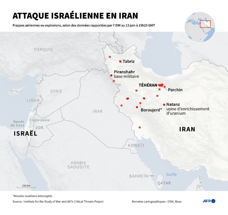 Lors des frappes, Israël a visé le centre pilote d'enrichissement d'uranium de Natanz (centre) et d'autres sites nucléaires en Iran. L'Agence internationale de l'énergie atomique (AIEA) a déclaré qu'il avait été détruit dans sa partie en surface.