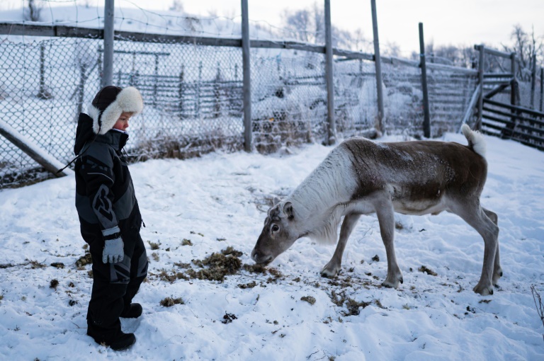 Fin novembre, quand le soleil se couche une dernière fois pour sept semaines, Anna Näkkäläjärvi-Länsman et ses deux enfants grimpent sur la motoneige jusqu'à l'enclos où les deux rennes de ses enfants vivent. "Le plus clair c'est le mien, il s'appelle +Corne dorée+", explique Antti Iisko, six ans, en donnant du lichen aux bêtes.