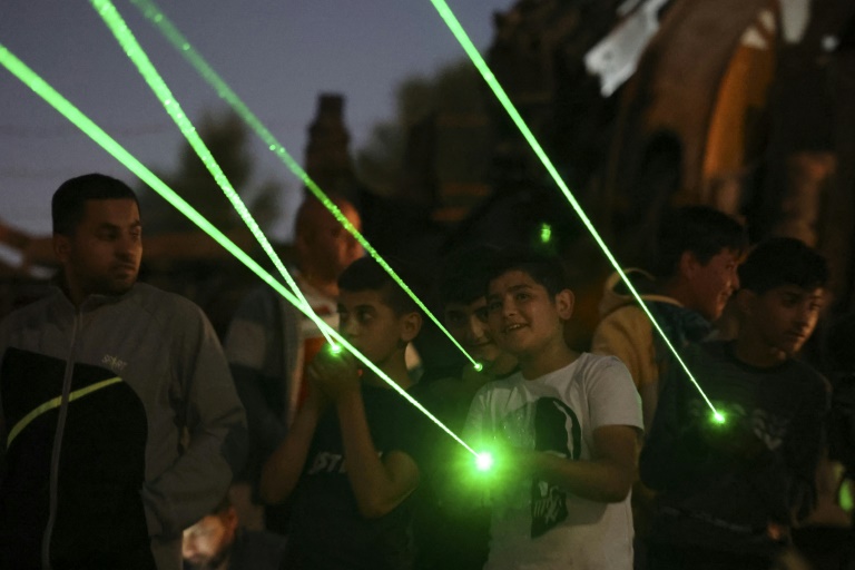 Sur une colline de Cisjordanie, lasers verts, feux d'artifice et chants à tue-tête transpercent la nuit noire et calme... Une nouvelle tactique d'un village palestinien pour rendre insupportable la vie de colons israéliens installés en face, et les pousser à partir.