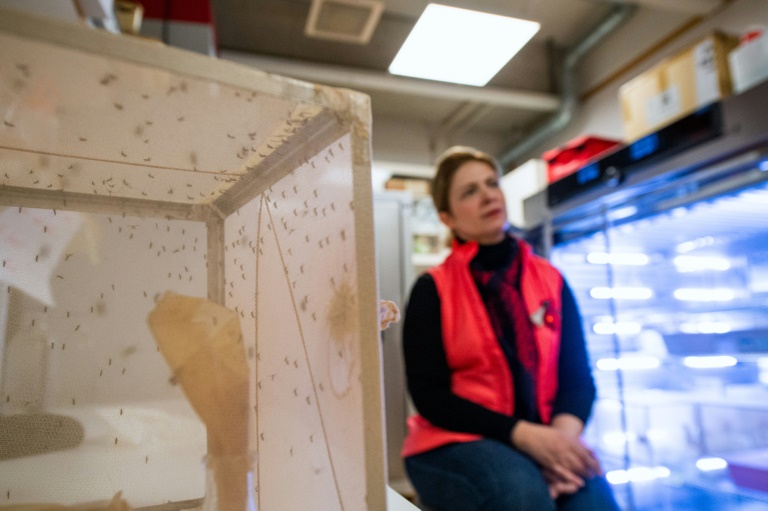 La petite fiole de liquide rouge est à peine dans la cage que les moustiques viennent s'y agglutiner: avec un faux sang inoffensif pour l'homme et les autres insectes, des scientifiques basés en Suède espèrent porter un coup mortel au nuisible et au paludisme.