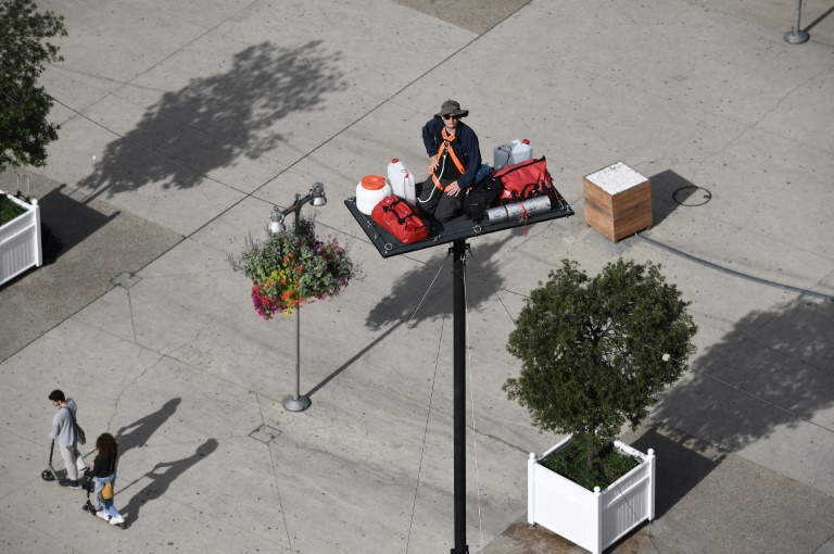 Rien d'insurmontable pour l'adepte du confinement, qui s'est déjà fait emmurer dans une capsule sous une galerie d'art marseillaise, s'est installé 13 jours dans un ours empaillé et a remonté le Rhône dans une bouteille. Sa "vigie", il l'a déjà expérimentée à 6 m à Esquibien (Finistère) puis à 12 m à La Criée de Rennes.