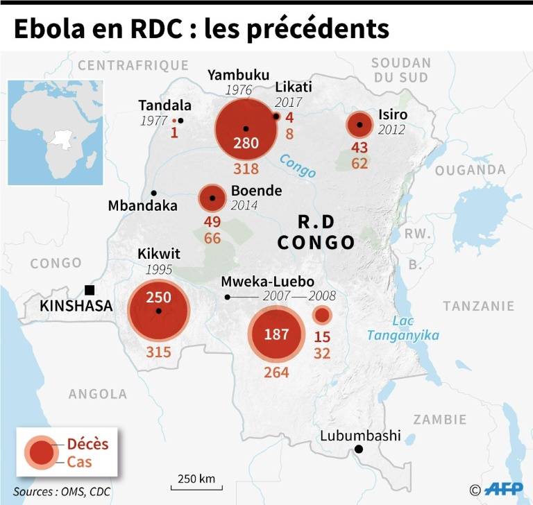 Le pays fait face à sa neuvième épidémie depuis son apparition sur le sol congolais en 1976. La dernière épidémie en RDC remonte à 2017. Rapidement circonscrite, elle avait fait officiellement quatre morts. Dans l'épidémie actuelle, les cas avaient jusqu'à présent été uniquement recensés dans la région de Bikoro, zone rurale très difficile d'accès à la frontière avec le Congo-Brazzaville.