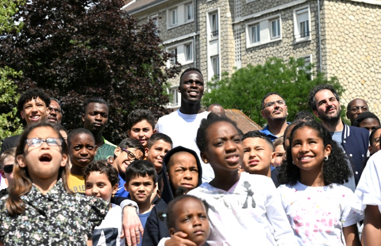 Armstrong, 8 ans, tape dans la main d'Édouard Mendy, il vient de réussir un "perfect" à l'épreuve de géographie de PowerZ, un jeu vidéo éducatif dans lequel s'investit le gardien du Sénégal et de Chelsea, venu jouer dans une école primaire de Drancy.