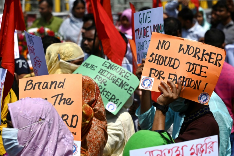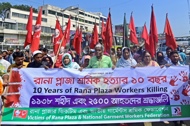 Des centaines de travailleurs, dont des survivants, ont manifesté lundi au Bangladesh pour réclamer justice et rendre hommage aux 1.130 personnes mortes 10 ans plus tôt dans l'effondrement d'une usine textile.