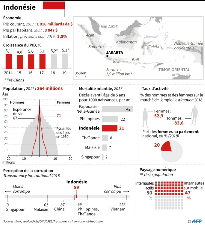 Plus de 190 millions d'électeurs doivent choisir entre deux candidats à la présidentielle mais aussi entre 245.000 candidats qui se présentent pour un siège aux parlements national et locaux dans le vaste archipel de 17.000 îles. Il s'agit de la plus grande élection jamais organisée dans le pays qui compte la plus importante population musulmane au monde. Le président sortant Joko Widodo qui espère profiter d'un boom des infrastructures orchestré pendant son mandat et de la bonne santé de la principale économie d'Asie du Sud-Est, est en tête des sondages.