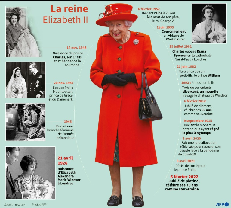 Louée pour "sa réussite remarquable" par son fils Charles, la reine Elizabeth II est devenue dimanche le premier monarque britannique à atteindre les 70 ans de règne, préparant l'avenir avec le souhait que l'épouse du prince héritier, Camilla, devienne reine consort après sa mort.