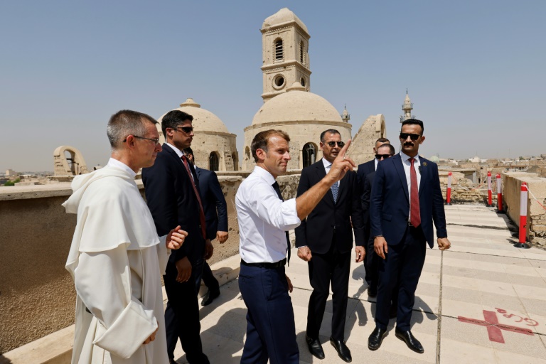 "Nous allons faire revenir un consulat et des écoles" à Mossoul, a annoncé M. Macron. Cette ville, à majorité sunnite, ainsi que la plaine de Ninive étaient jadis de hauts lieux du christianisme. Mais les violences qui ont éclaté à partir de 2003, puis l'occupation d'un tiers de l'Irak par l'EI entre 2014 et 2017, ont poussé la majorité des chrétiens à l'exil. Ils ne sont plus que 400.000 dans le pays, contre 1,5 million en 2003 avant l'invasion américaine.