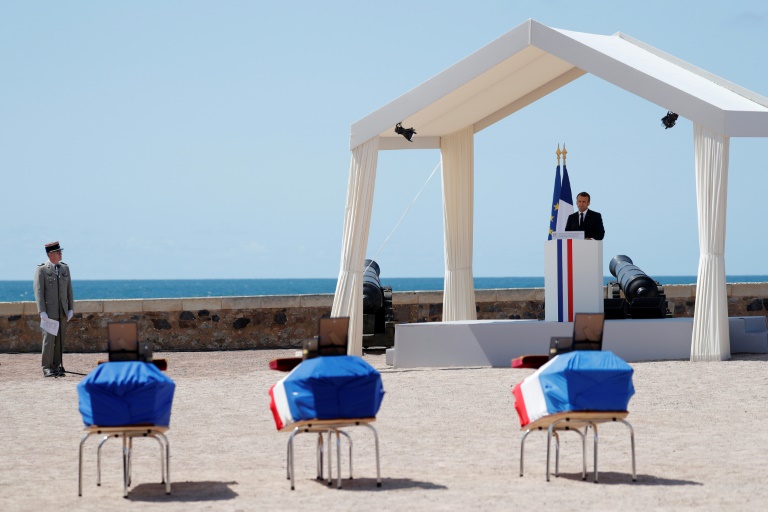 "C'est bien toute la Nation qui s'incline devant la douleur digne de leurs familles, leurs compagnes, leurs enfants, leurs parents et tous leurs proches. Chères familles, aujourd'hui le chagrin l'emporte, mais (...) soyez fières comme la France est fière d'eux", a ajouté le président.