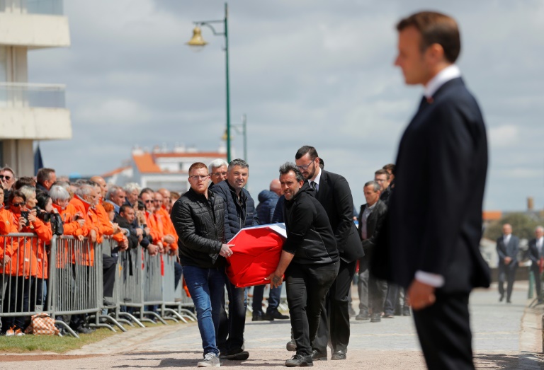 Le président Emmanuel Macron a décoré jeudi aux Sables-d'Olonne (Vendée) les trois sauveteurs "morts en héros" en portant secours à un chalutier en détresse et a promis de défendre le "beau modèle" du sauvetage en mer.
