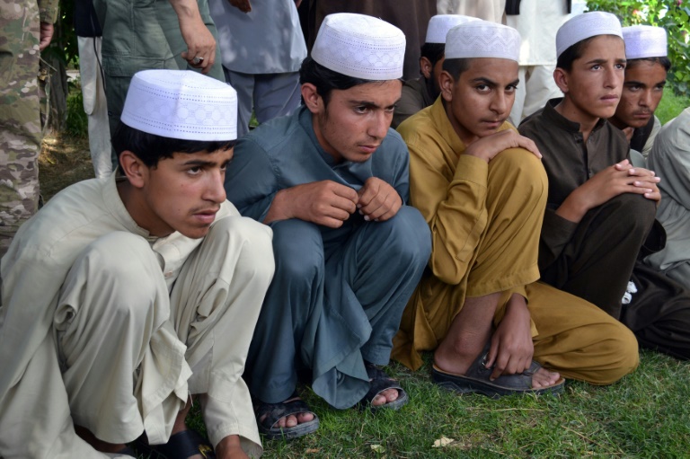 "Nos parents ont toujours voulu que nous fassions des études islamiques, mais nous ignorions qu'on nous tromperait et qu'on nous laverait le cerveau pour faire de nous des kamikazes", explique à l'AFP Shafiullah, 9 ans, après son sauvetage par la police.
