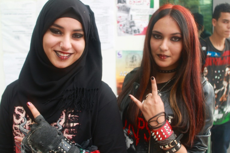 "C'est un événement inédit", se réjouit une lycéenne constantinoise qui se fait appeler "Sadness Spirit" (esprit de la tristesse). Vêtue de cuir noir, bracelets à pics, piercing sur le visage et mèches rouges, elle est venue au Fest avec une amie portant le voile islamique mais arborant également piercings et bracelets de cuir, accessoires de choix des fans de métal.