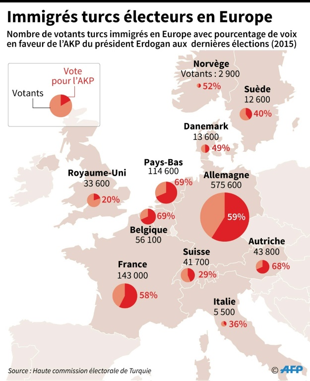 Mais aucune question spécifique ne leur est en fait posée car, selon le Haut-Conseil électoral (YSK) de Turquie interrogé par l'AFP, "ces propositions sont dans la sphère publique depuis plusieurs mois et sont donc connues". En Allemagne, les deux camps semblent mobilisés, d'autant que cet électorat représente près de la moitié des Turcs expatriés et habilités à voter. Une manne donc pour les opposants comme les partisans de M. Erdogan.
