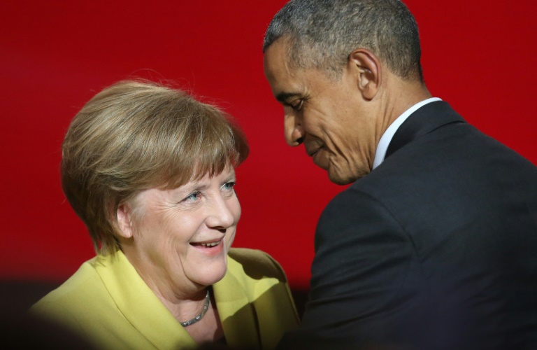 Le président américain Barack Obama et la chancelière allemande Angela Merkel ont mis dimanche leur poids dans la balance pour défendre le projet d'accord de libre-échange UE-USA, malgré l'opposition croissante qu'il suscite des deux côtés de l'Atlantique.