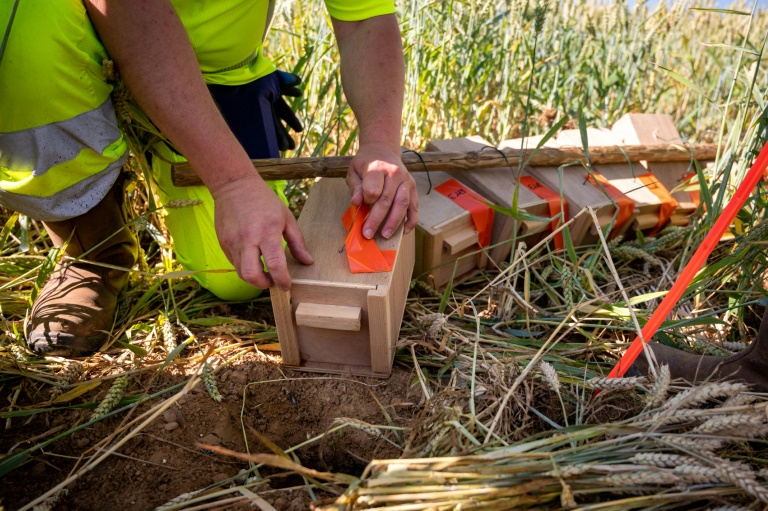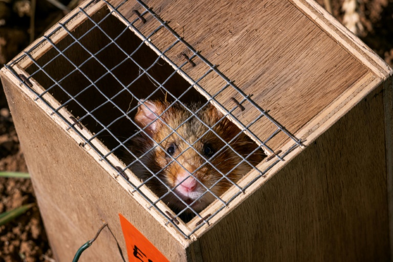 Clap! La trappe s'ouvre, et le "cricetus cricetus", nom scientifique du rongeur, tombe dans le terrier d'environ 80 cm de profondeur creusé au préalable, immédiatement recouvert de paille agglomérée. "Le but, c'est qu'ils ressortent le soir venu lorsqu'il y aura moins de risques d'attaques de rapaces", dit Célia Schappeller, soigneuse au sein de l'association Sauvegarde Faune Sauvage (SFS), qui a élevé les individus en captivité en vue de ce grand jour.