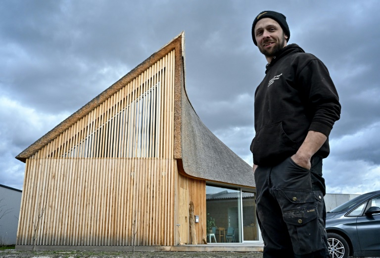 Végétale mais moderne, sa maison détonne. Ses 200 mètres carrés de toiture arborent un beau chaume à la pose compacte, obtenue grâce à des roseaux qu'il cultive localement au bord du superbe lac de Neusiedl (est), dans un paysage classé à l'Unesco.