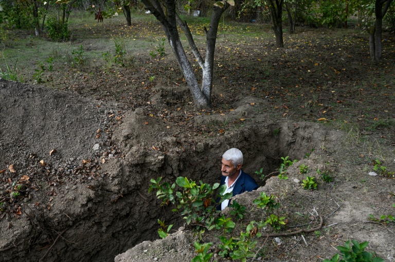 "Pourquoi nous sommes toujours là ? C'est une question vraiment importante", note Sakhib Askerov, 66 ans, après avoir montré la tranchée creusée derrière sa maison en bois.