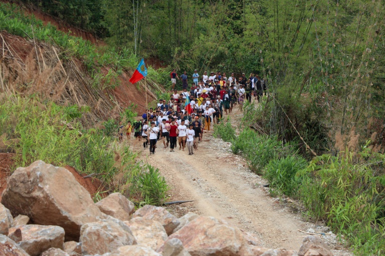 Depuis avril, des centaines de membres de l'ethnie Pradawng défilent régulièrement sur les chemins de terre battue contre le projet d'extraire du plomb sur leurs terres, qui risque de transformer le paysage à jamais, sans aucune forme de bénéfice pour eux.