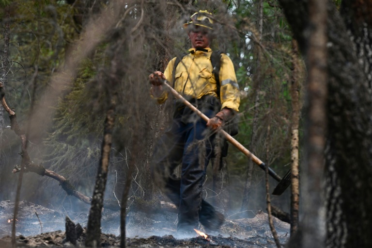 "Cela fait 14 jours qu'on est ici, aucun répit en perspective", souffle David Tikkanen, capitaine d'une unité des pompiers de l'Etat, en s'appuyant sur un râteau. Un travail de fourmi éreintant, au milieu d'un brasier de plus de 80.000 hectares.
