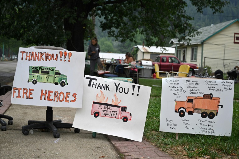 Pas moins de 5.400 hommes et femmes sont affectés au Dixie Fire, le plus gros incendie à ravager l'Etat cette année. Sur la route qui relie Twain à la ville de Quincy, là où les pompiers campent entre deux quarts, une succession de panneaux rendent hommage à tous ces "héros du feu".