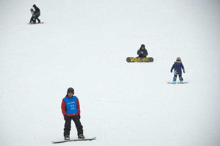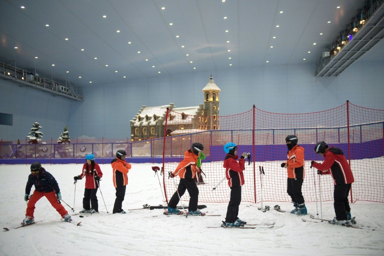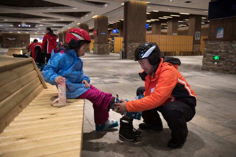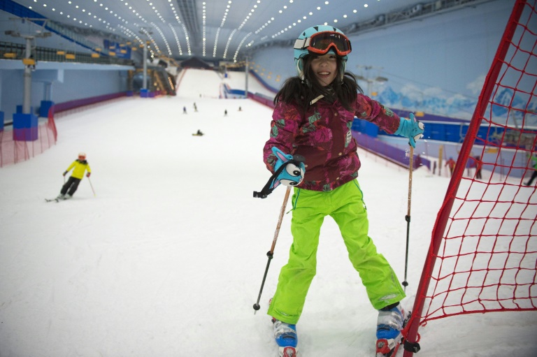 L'été chinois brûle encore au dehors, mais les touristes dévalent en pleine canicule des pistes glacées à -5° degrés dans le plus grand parc de ski intérieur au monde, symbole de l'explosion des sports d'hiver dans le pays asiatique.