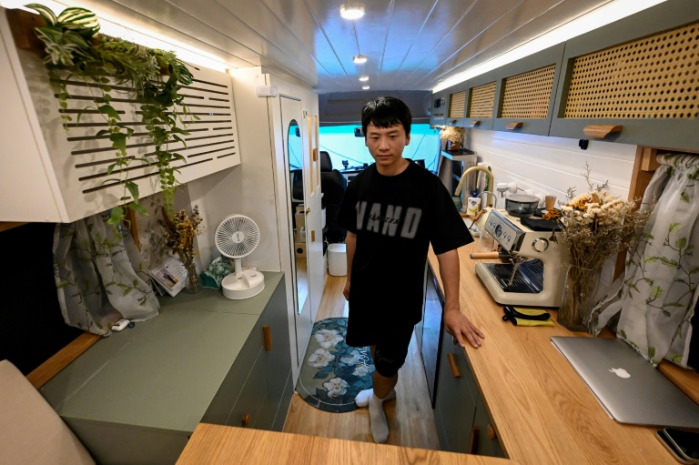 "Dans un van aménagé, je ressens un sentiment d'appartenance", affirme Li Conghui, qui travaille depuis plus de 10 ans à Shenzhen et ne se sentait "pas chez (lui)", dans la chambre qu'il louait auparavant.