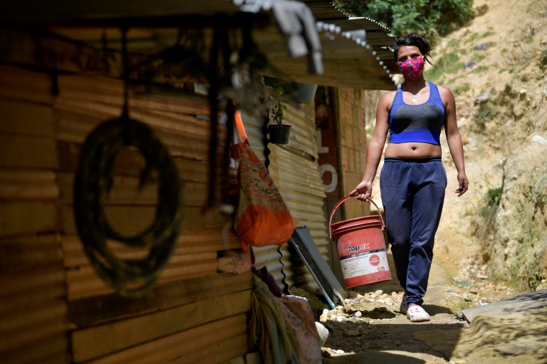 L'eau ne s'écoule pas toujours du tuyau de caoutchouc noir qui pend derrière la masure de Yeimy Martinez. En pleine pandémie de nouveau coronavirus, le simple fait de se laver les mains relève de la gageure dans ce bidonville de Bogota.