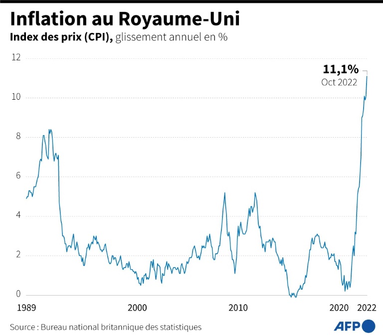 Pour compléter ce sombre panorama, les faillites se multiplient et l'inflation a bondi à plus de 11% en octobre, aggravant une crise du coût de la vie qui alimente grèves en cascade et appels à taxer davantage les profits des géants énergétiques.