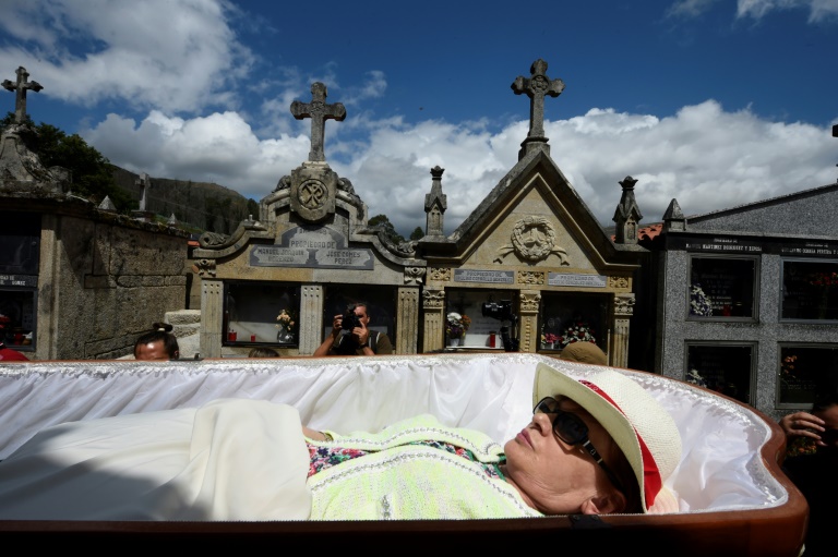 "C'est un culte à la vie. Des gens qui dans des moments difficiles font ce sacrifice très grand qui consiste à se mettre dans un cercueil", raconte-t-il. "Pour moi, c'est ce qu'il y a de plus grand", s'extasie Maria del Carmen Gonzalez, native d'As Neves, où chaque 29 juillet, se renouvelle cette procession, qu'elle a suivie, un cierge à la main, au côté de sa fille Aida, les épaules couvertes d'un linceul blanc et pieds nus.