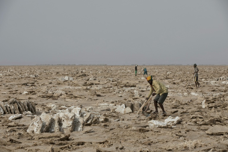 "Si ça continue comme ça, on n'aura plus de travail", déplore Musa Idris, un mineur interrogé sur les bords du lac Assalé, où les températures frôlent parfois les 50°C, en faisant l'un des endroits les plus chauds et arides au monde.
