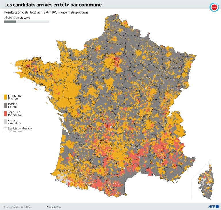 A l'exception des départements des Yvelines, des Hauts-de-Seine et de Paris remportés par Emmanuel Macron, le leader insoumis est arrivé en première position dans les cinq autres départements de la région parisienne. Avec un bond de plus de huit points par rapport à 2017, M. Mélenchon arrive en tête en Ile-de-France dans un duel très serré - 2.554 voix - avec le président sortant, qui s'y était largement imposé il y a cinq ans.