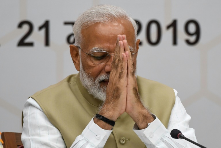 À la télévision, sur internet, sur des affiches dans la rue, le visage orné d'une barbe blanche et barré de fines lunettes de Narendra Modi est une présence constante dans la vie quotidienne des Indiens depuis son arrivée au pouvoir en 2014. Une saturation de l'espace public que l'Inde n'avait plus connue depuis la Première ministre Indira Gandhi, assassinée en 1984.