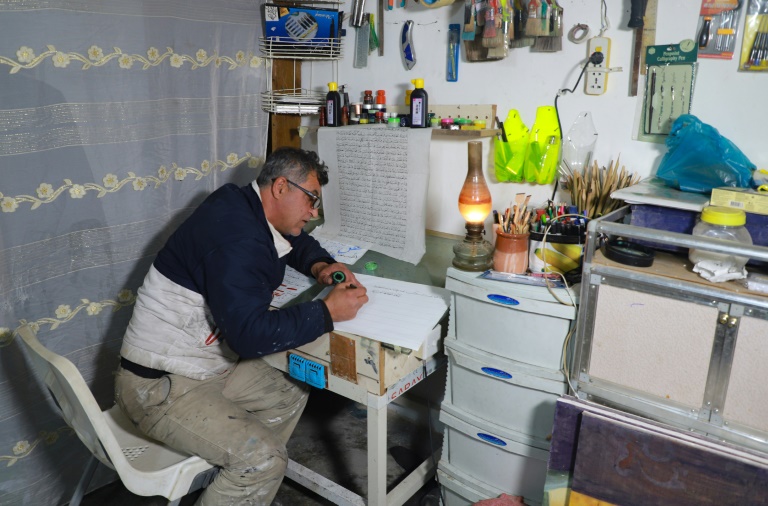 "Nous espérons que notre gouvernement s'intéressera à cet art, par le biais d'expositions, de compétitions", ajoute le calligraphe de 49 ans, crâne rasé et tout de noir vêtu. "La survie de la calligraphie arabe dépend du soutien de l'Etat", ajoute-t-il. Mais pas question de jeter l'éponge.