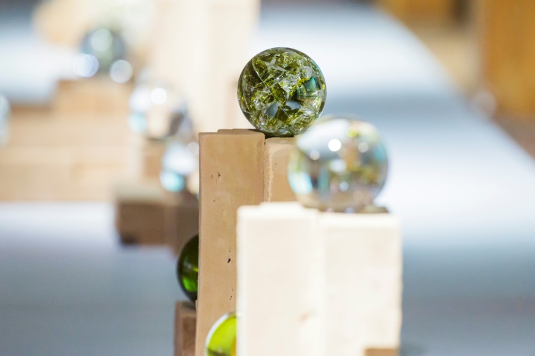 A Saint-Louis, une exposition de l'Académie des savoir-faire de la Fondation Hermès retrace, jusqu'au 18 avril, plusieurs mois de recherches entre ingénieurs, designers et artisans autour du réemploi d'une bouteille en verre emblématique de Marseille qu'ils ont pu redessiner et réinventer: boules de pétanque, savon de Marseille ou logo de l'OM par exemple...